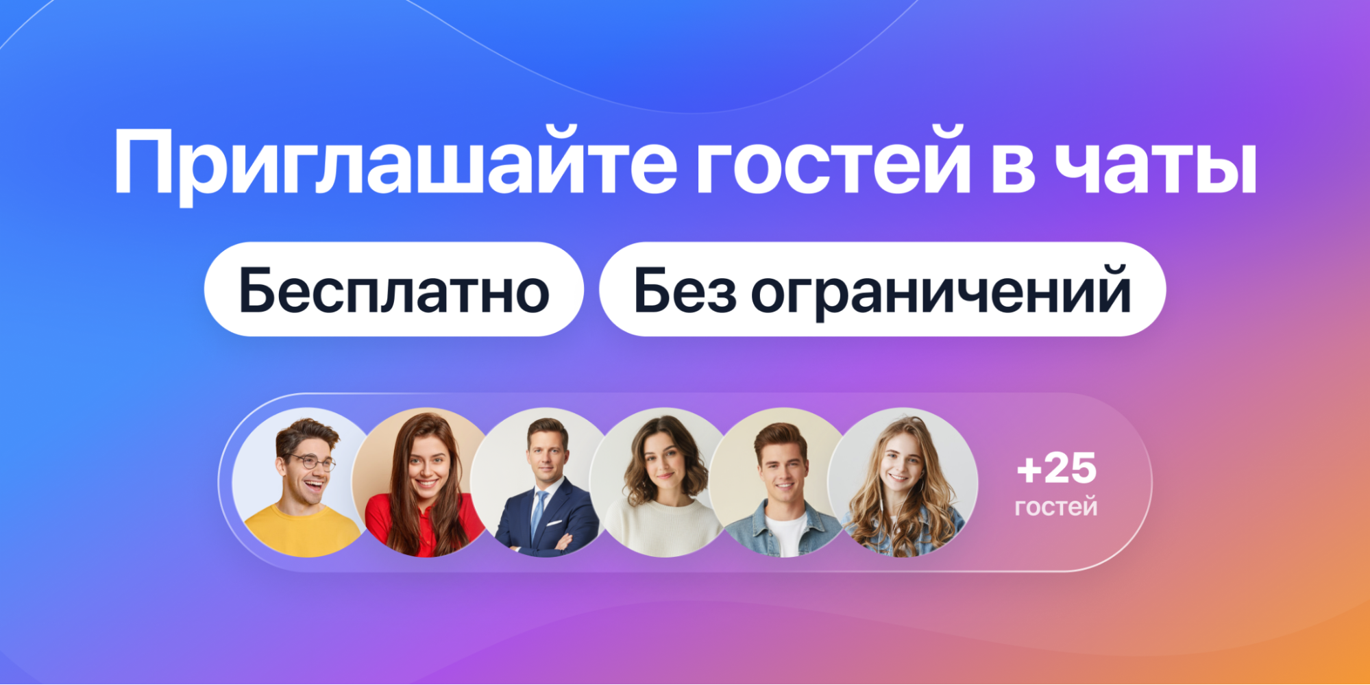 Гостя можно пригласить в любое количество чатов — для этого не нужно покупать дополнительную лицензию.
